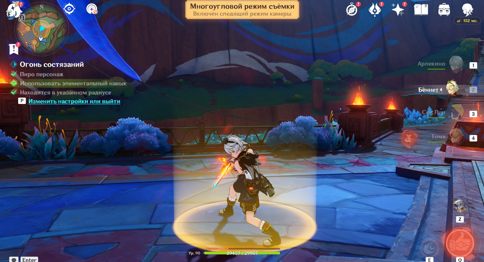 ● поставьте Пиро персонажа;