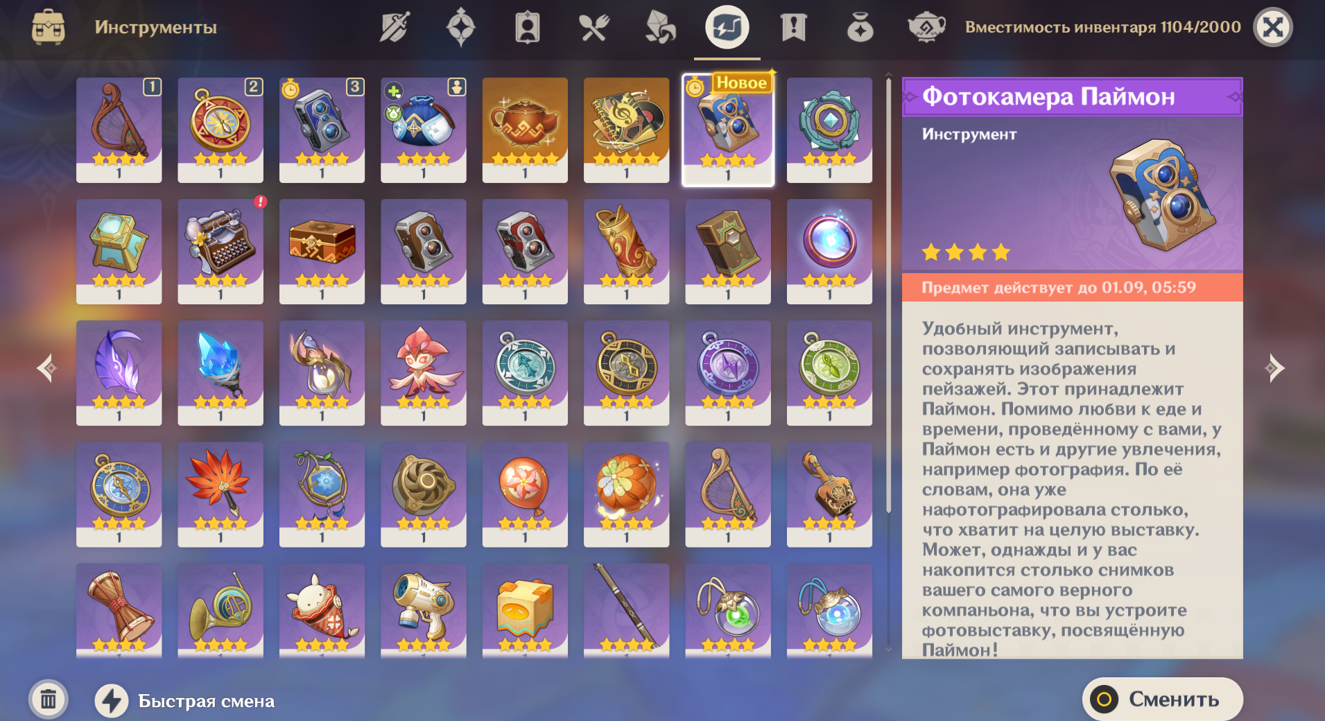 После начала события в журнале заданий появится стартовый квест. Выполнив его, вы получите особую фотокамеру Паймон – гаджет для фото.