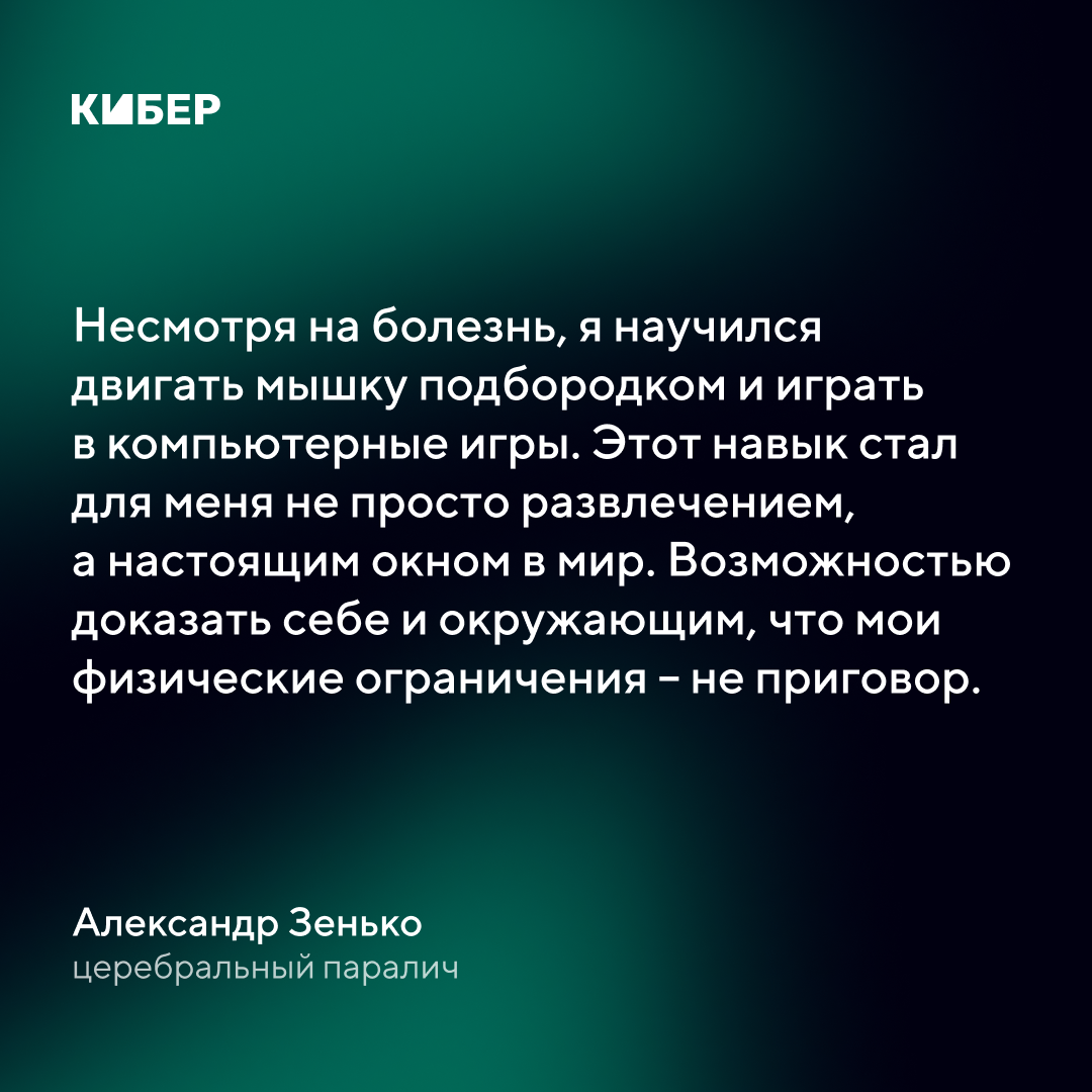 «Несмотря на болезнь, я научился двигать мышку подбородком и играть в компьютерные игры. Этот навык стал для меня не просто развлечением, а настоящим окном в мир. Возможностью доказать себе и окружающим, что мои физические ограничения – не приговор».