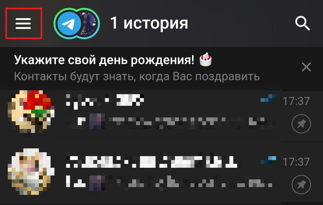 Откройте боковое меню, нажав на три полоски в левом верхнем углу.