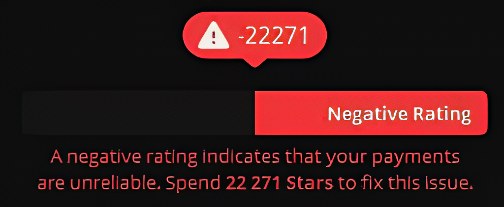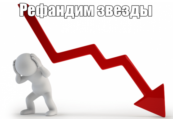 - За возврат купленных звезд. При возврате потраченных средств вам спишут в 10 раз больше баллов, чем было куплено звезд. Пример: вы купили 100 звезд, а затем вернули за них деньги – потеряете 1000 баллов рейтинга.