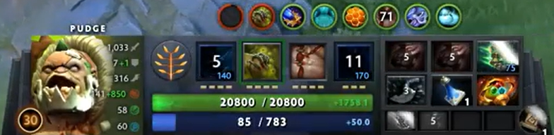 Или что вы можете сказать, например, про этого Пуджа? В актуальном патче у героя даже с таким количеством стаков было бы около 11 тысяч здоровья. Однако Apex, просто находясь в инвентаре, увеличивал основную характеристику на 80% — и здравствуйте 20 тысяч ХП! Были на 70-й минуте и Морф с 1000 ловкости и Skywrath Mage с голубями по 800 урона каждый, и Storm Spirit, способный пролететь всю карту на ульте. Список бесконечный.