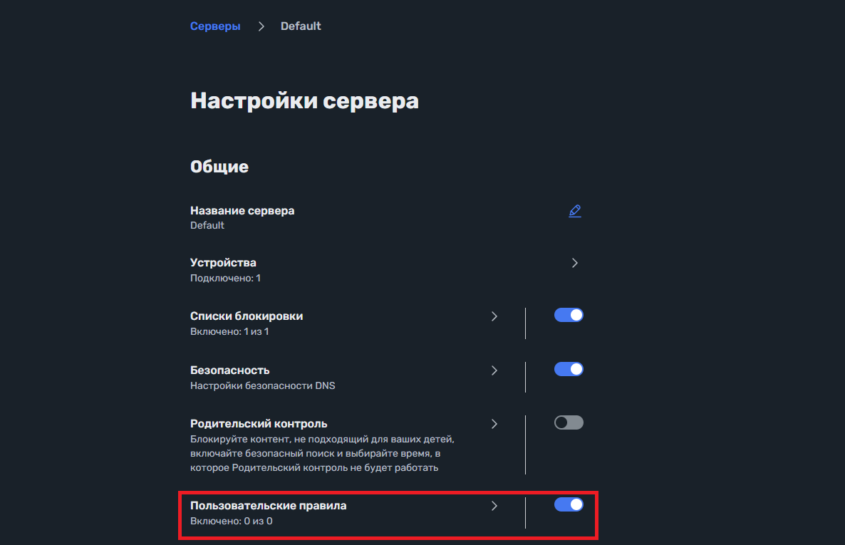 Теперь нужно вручную добавить правила для входа. Слева в меню выберите «Настройки сервера».