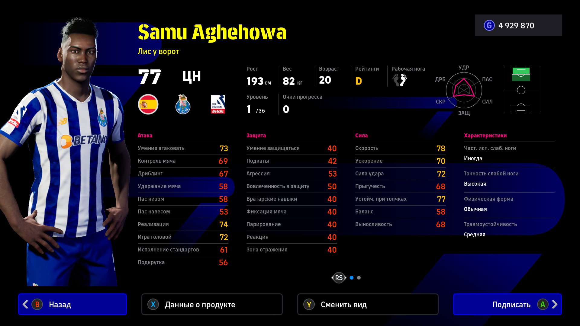 Саму Агехова – настоящий монстр eFootball. Нападающий «Порту» сочетает силовой футбол с замыканиями верховых мячей и эффективные рывки на дальние дистанции с точными ударами в одно касание. По манере игры напоминает Эрлинга Холанда.
