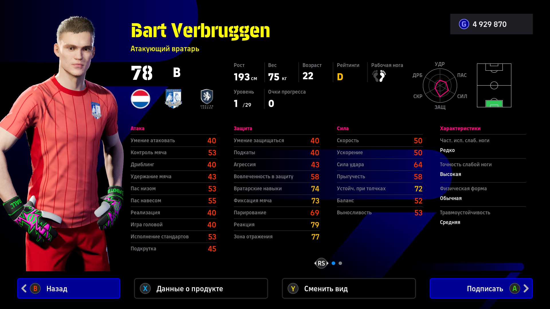 Другой прекрасный игрок «Брайтона» – Барт Вербрюгген. Нидерландский кипер отлично реагирует на удары и обладает большой зоной отражения, которую дополняет высокий рост в 193 см. Барт – основной вратарь английской команды и часто будет в хорошей форме.