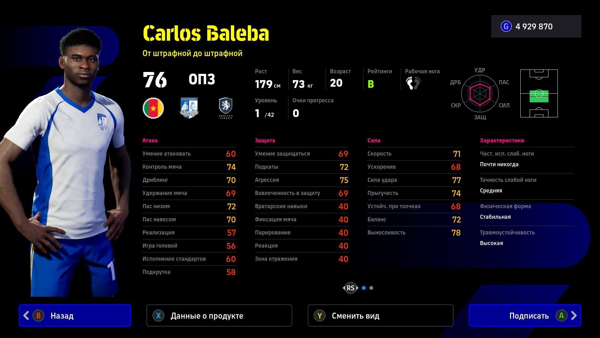 Классный опорник для первого состава. Карлос Балеба хорошо отбирает, пасует, удивляет приятным контролем и даже выигрывает некоторые верховые мячи. У камерунца важные умения на перехваты, передачи в одно касание и сопротивление прессингу.
