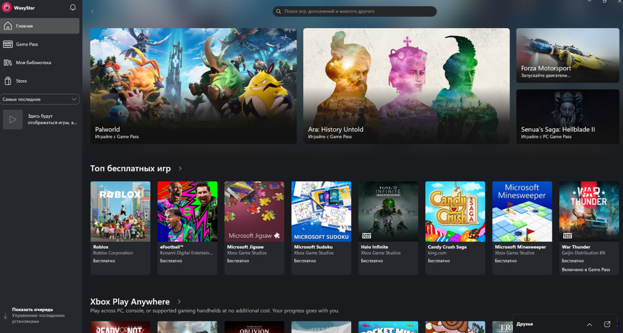 Готово! Теперь вы можете пользоваться всеми возможностями приложения: просматривать каталог игр, скачивать проекты по подписке Game Pass, общаться с друзьями, вести трансляции и управлять своей учетной записью.