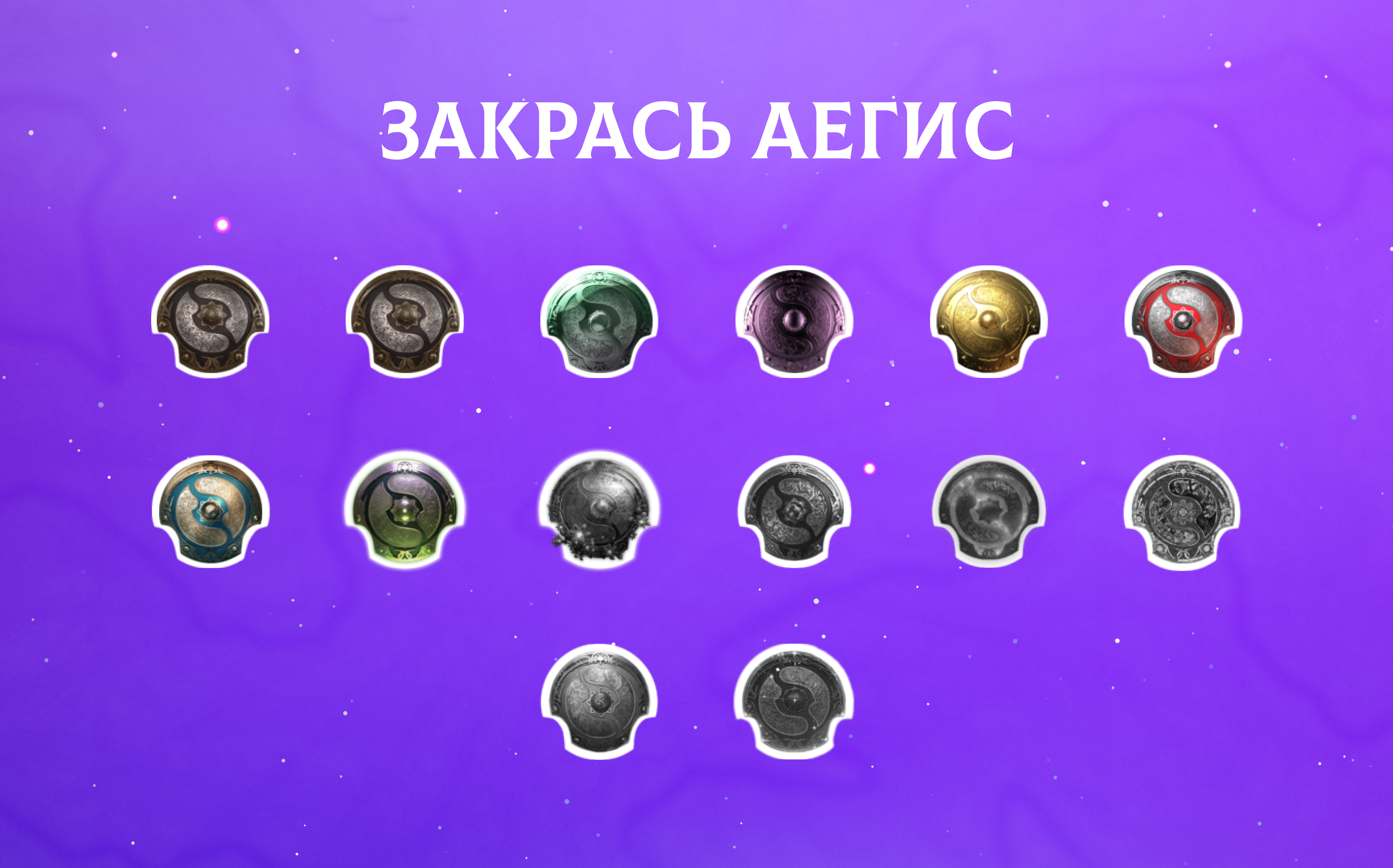 Начиная с сегодняшнего дня и до конца The International запускаем специальный конкурс. Все, что от вас требуется, – закрашивать Аегисы. Всего их 14 – по количеству турниров серии.