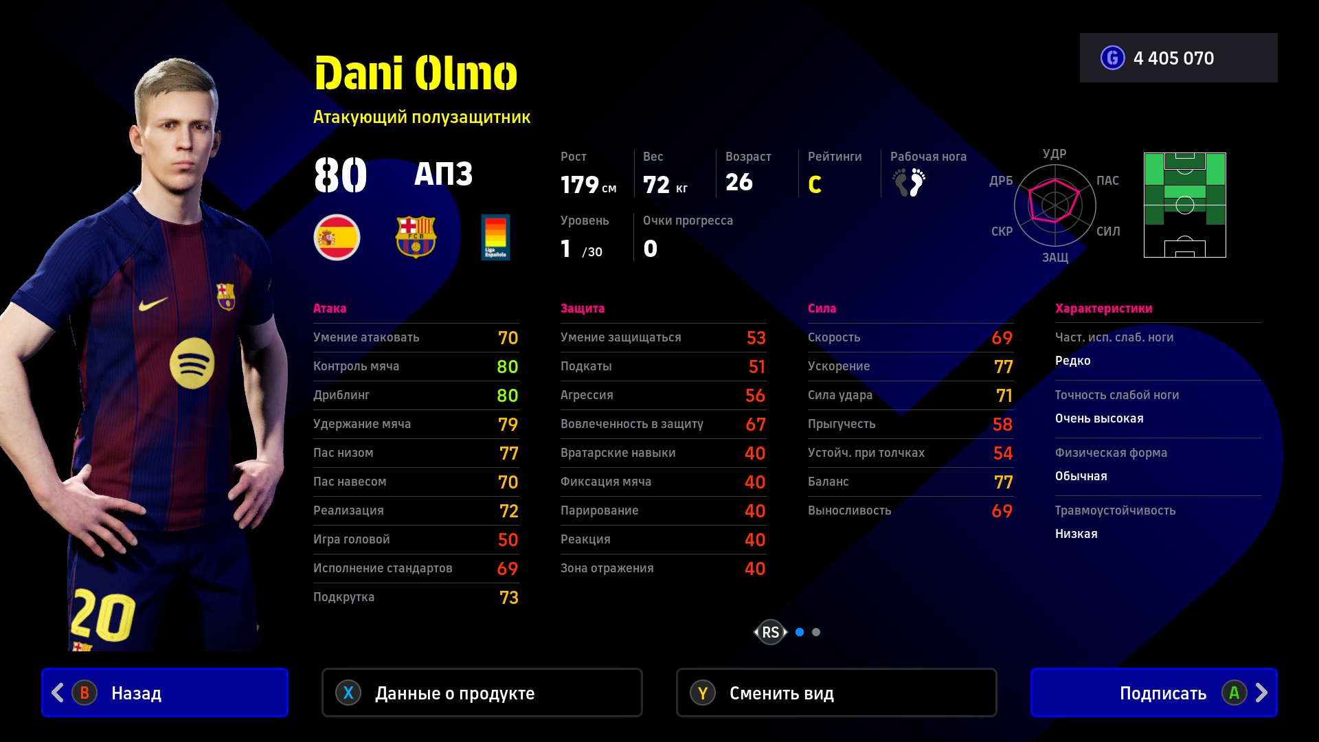 Самый интересный АПЗ с «Суперзаменой» – Дани Ольмо. Испанец в три раза дешевле Джамала Мусиалы, но не уступает ему в завершении и равномерно распределяет комбинационные умения. Разрезающие передачи в одно касание делают Ольмо опасным плеймейкером.