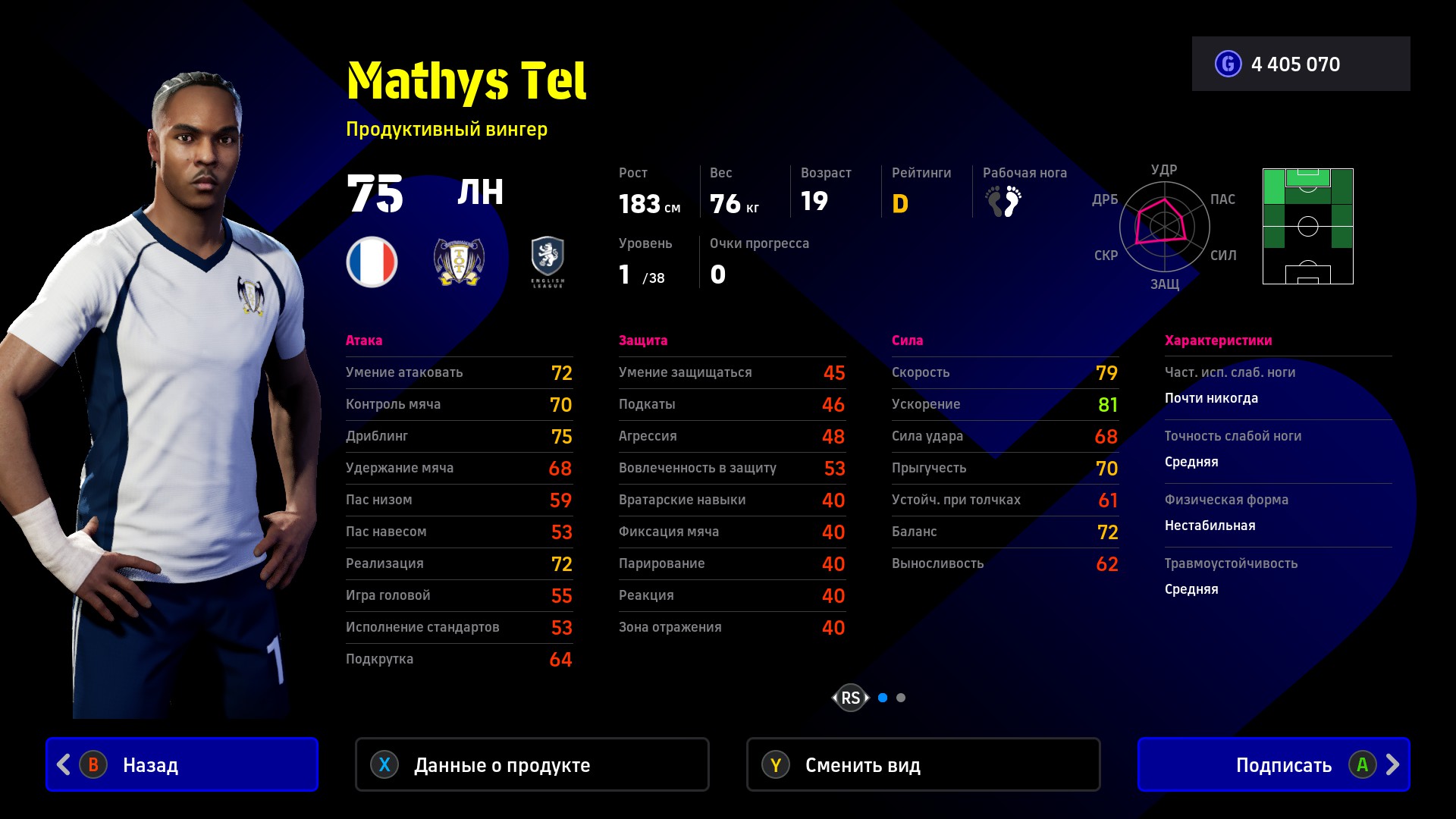 Матис Тель принесет пользу слева и в центре атаки. Француз неплохо проходит соперников на дриблинге, но его главное преимущество перед другими вингерами – усиленные удары. Тель бьет в одно касание и может удивить издали.