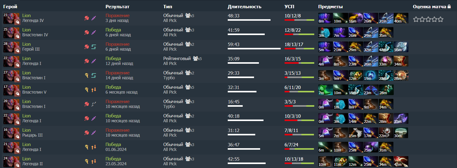 В итоге Лион через Fist of Death ощущается нежадным мидером со смешанным уроном и тонной контроля. Вот только дерется он по кулдауну ульты, а в перерывах никак не может быстро набрать уровень и предметы. Архетип очень веселый, но для серьезной игры есть варианты значительно лучше.