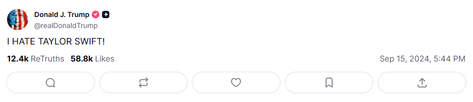 Президент США Дональд Трамп тоже не промолчал: «Я считаю, что он отличный парень, а она потрясающая личность, я желаю им большой удачи». И это неожиданно, потому что год назад он прямо заявлял «Я ненавижу Тейлор Свифт!». Президент невзлюбил поп-исполнительницу, когда она публично поддержала кандидатуру Камалы Харрис в предвыборной гонке.