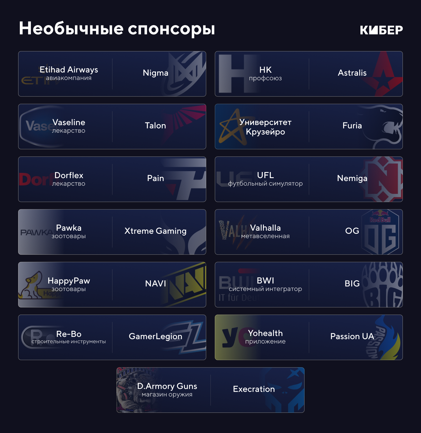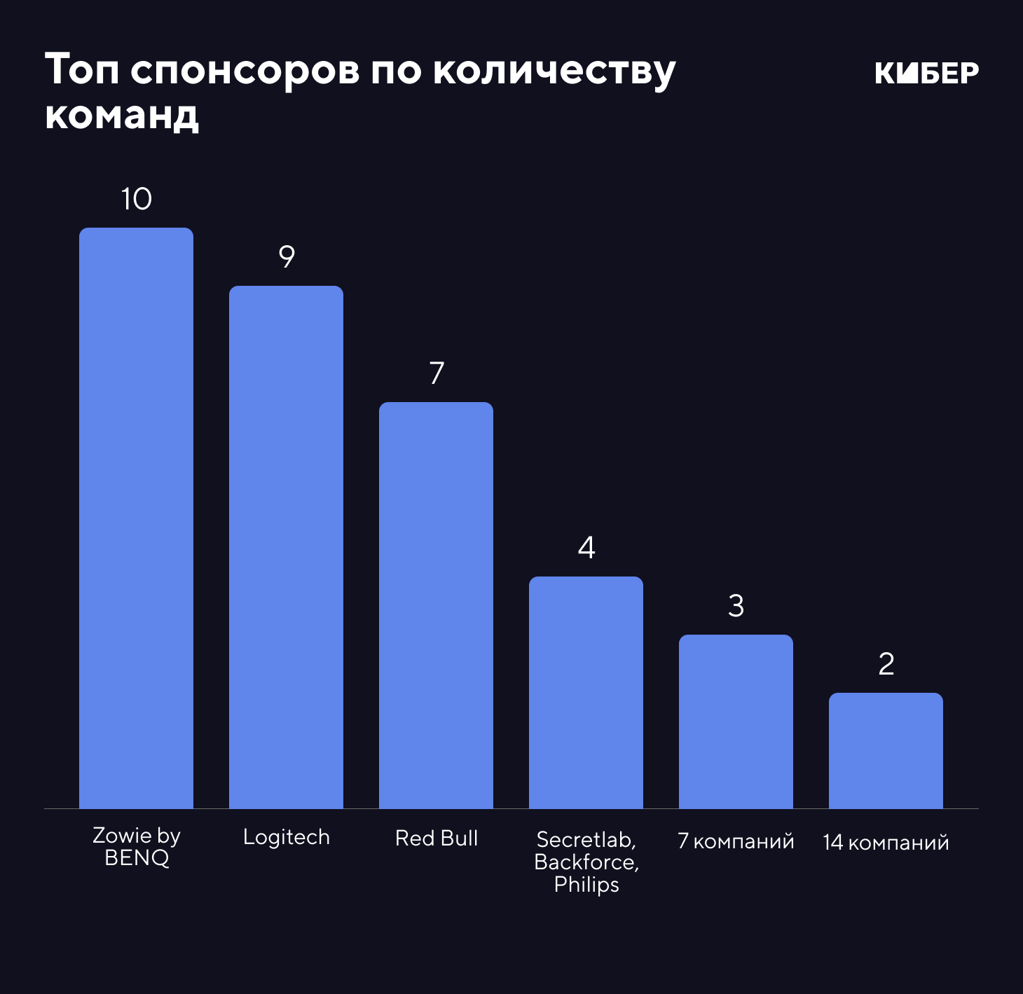 Абсолютные лидеры по количеству спонсируемых команд – Zowie, суббренд Benq, и Logitech. Недалеко от них Red Bull.