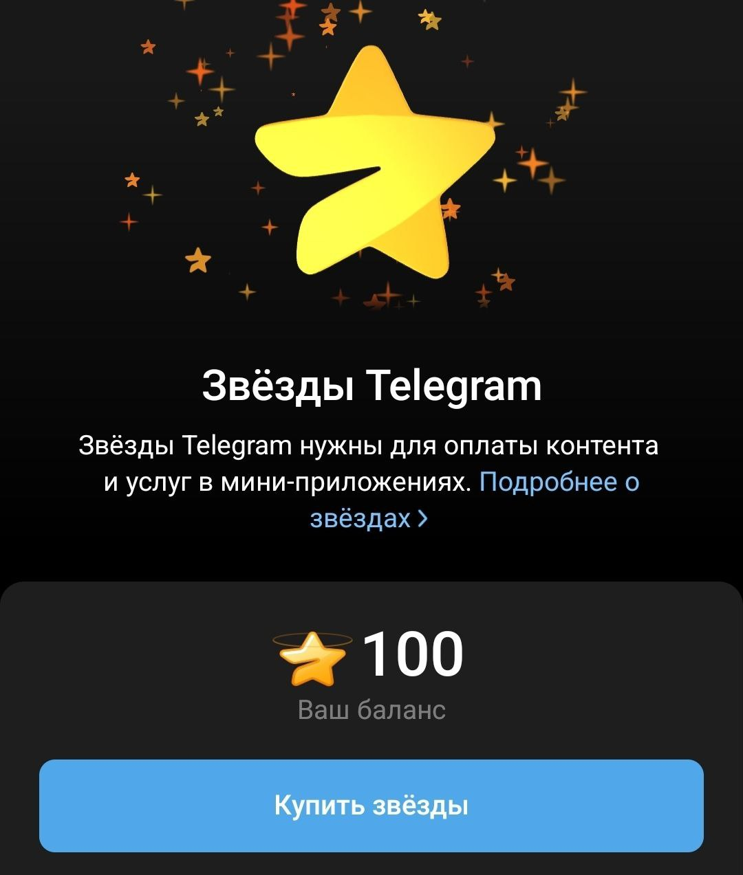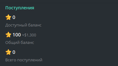 - Доступный баланс: количество Звезд, доступных для использования или вывода прямо сейчас.