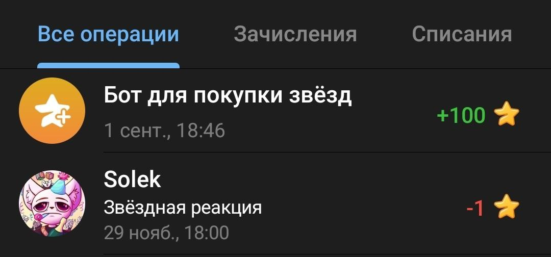 - Всего поступлений: общее количество операций, в результате которых на счет поступали Звезды.