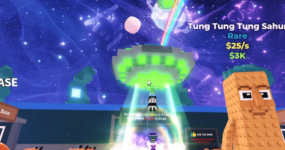 Весь мир погружается в черную зону с элементами сбоев: мерцающая графика, статические шумы и искажения. Случайные брейнроты проваливаются в глитч-дыры и выходят обратно с новой аурой. Эта особенность не только меняет внешний вид, но и ощутимо увеличивает доход.