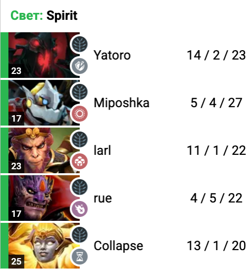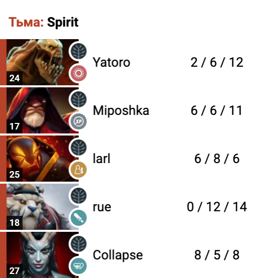 Очень важно в случае с Драконами отметить их новичка команды – rue. Парень влился в один из сильнейших коллективов мира, и нужно соответствовать уровню, что у него, в целом, получается. Но иногда он вылетает из общей картины. Это его первый The International, и несмотря на стабильную игру в течение сезона, выступление на главной арене года — совсем другой уровень давления. rue пришёл в Spirit, по сути, на место Mira, и, несмотря на определённый прогресс, пока не очевидно, сможет ли он дать тот же уровень креативности и уверенности в решающих матчах.