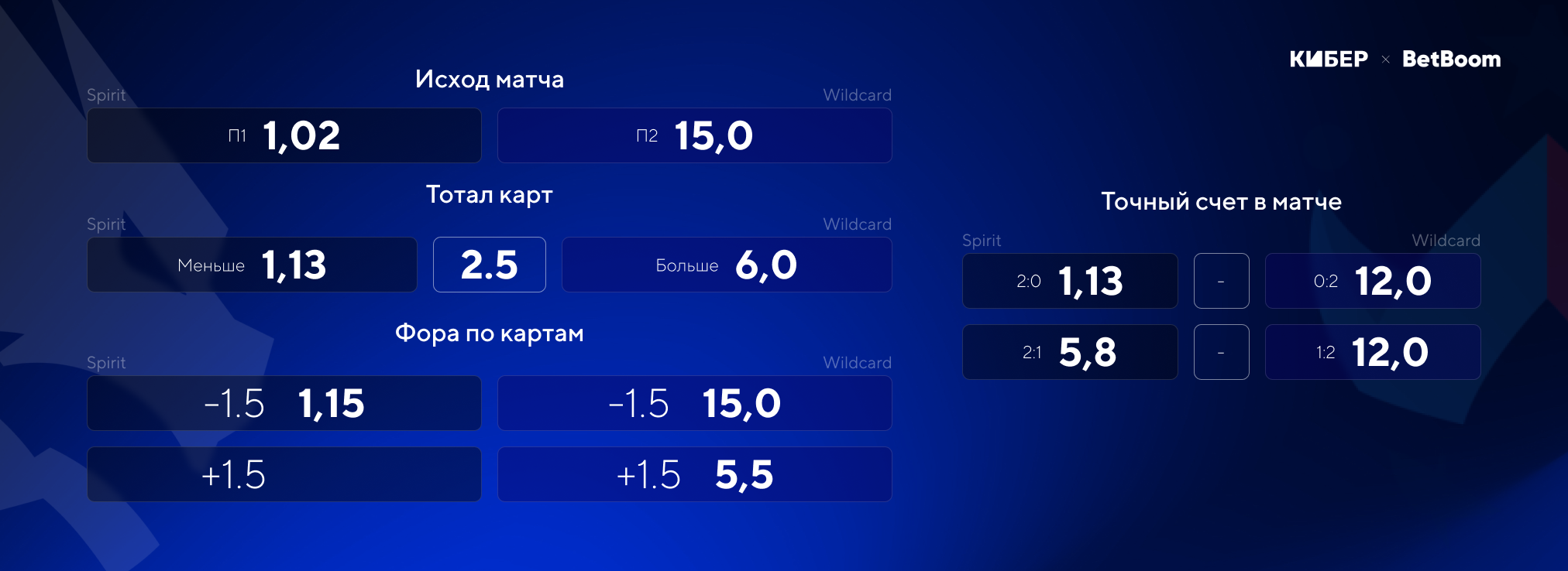 Spirit превосходит соперника по всем параметрам. В среднем команда делает на пять киллов больше, чем Wildcard. Это можно использовать для ставки на фору по убийствам. Но не стоит рассчитывать на большую разницу: вероятно, обе карты будут короткими, поэтому советуем рассмотреть плюсовую фору на киллы Wildcard. И заодно присмотреться к ТМ по длительности карты.
