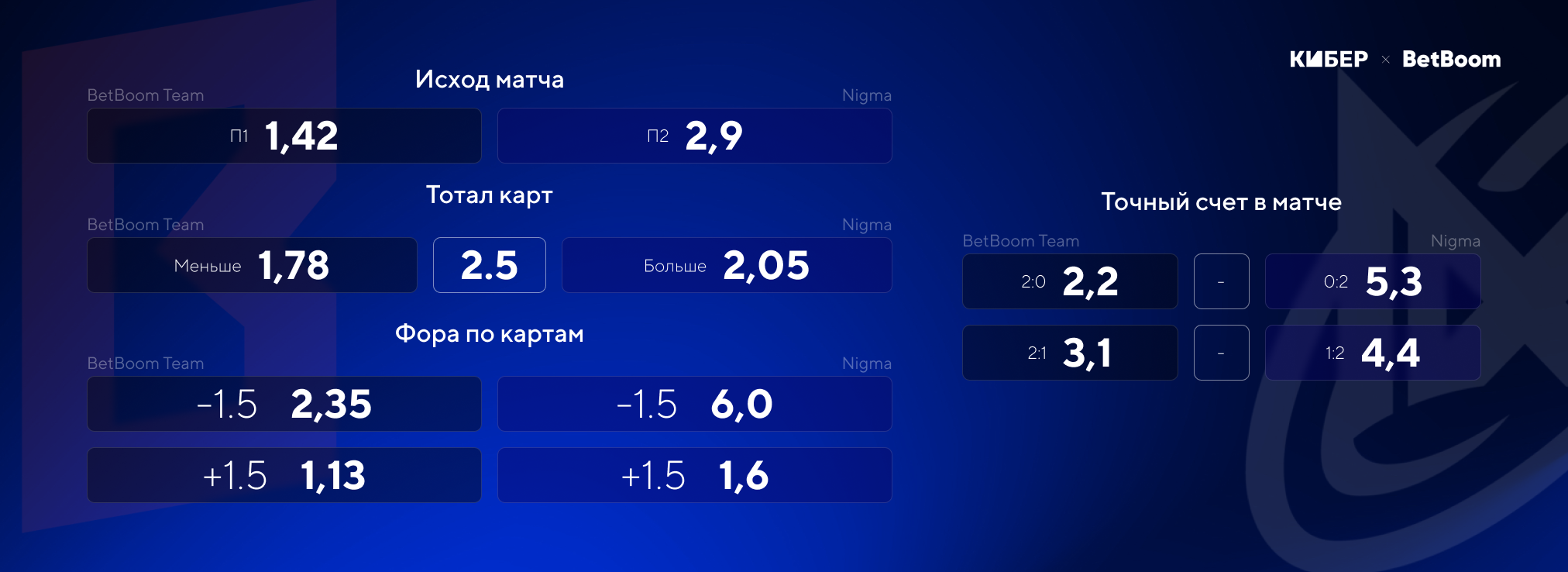 Оба состава играют нестабильно: они хорошо стоят линии и могут засноуболлить противника, но если что-то пойдет не так, то карта может затянуться на час. Если после лейнинга не будет явного лидера, то можно аккуратно попробовать ТБ по длительности карты и ТБ по киллам: BetBoom Team любит подраться, да и у Nigma это получается неплохо.