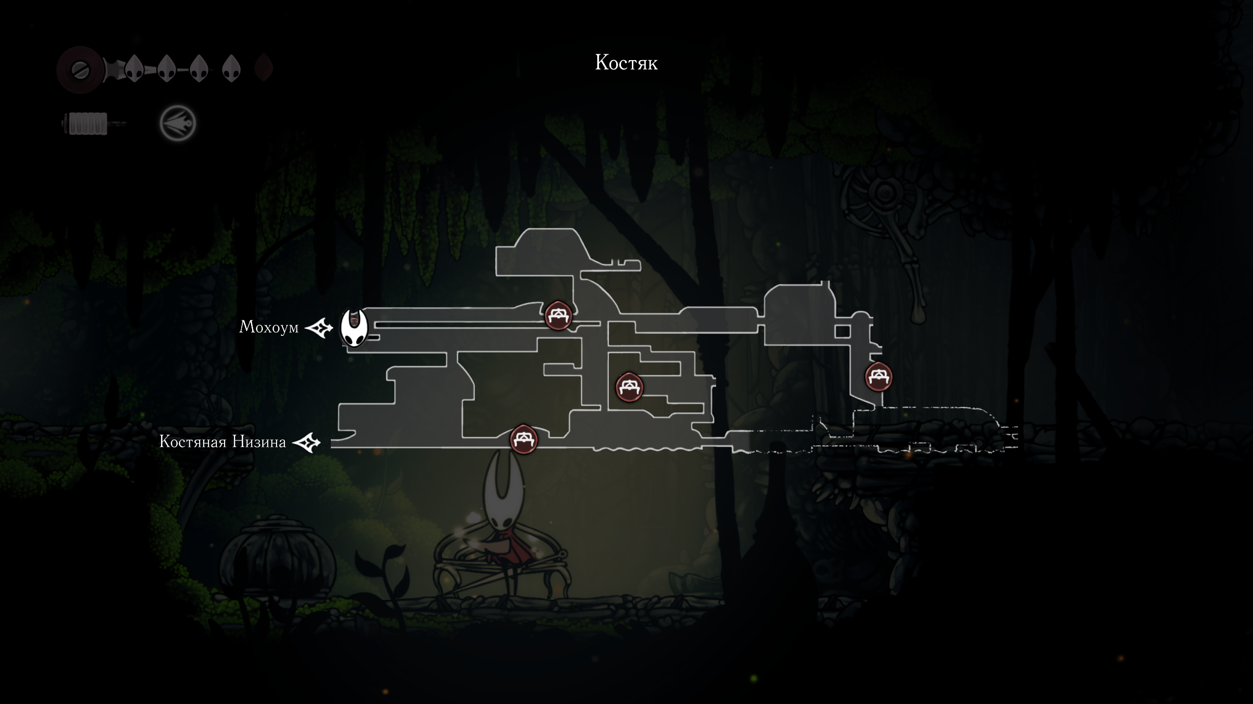 На старте самый удобный фарм находится в Мохоуме (Mosshome), Костяная низина (Bone Bottom). Здесь враги простые и приносят по 3-5 бусин за раз. Достаточно перезаходить в комнаты – они будут возрождаться и приносить бусины. Цикл можно повторять до бесконечности.