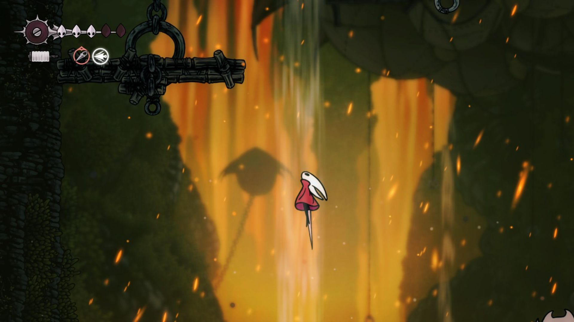Интересная особенность состоит в том, что лечиться можно и на бегу, и в воздухе, хотя скорость движений немного падает. А если во время анимации Хорнет получит удар, шелк сгорит, и лечение не пройдет.