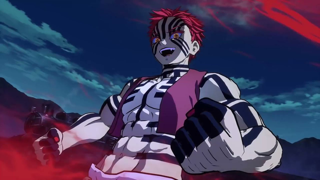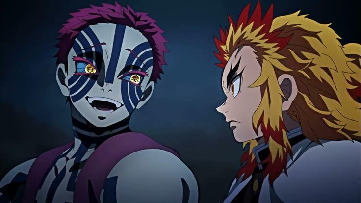 - Противники: он сражался на равных с Тандзиро и Гию, даже когда они оба использовали свои метки охотников, а Танджиро использовал Танец Бога Огня. Если бы он не потерял волю продолжать битву в ключевой момент, шансы у противников были бы минимальны.