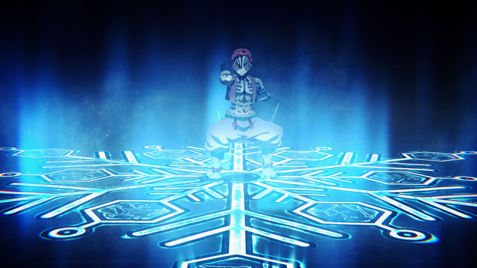Важно, что даже после превращения он сохранил связь с прошлым: узор на его хаори не просто напоминает тюремные татуировки. Это перевернутая версия символа из игры «Sanshuko» в традиции кодо, которая означает «Снег на одинокой вершине». Этот мотив напрямую связан с именем Коюки (в ее имени есть иероглиф «снег»), а также с ее снежинкой-заколкой. В японской культуре перевернутый символ часто ассоциируется со смертью. Таким образом, сам Аказа бессознательно носил на себе память о своей погибшей возлюбленной.