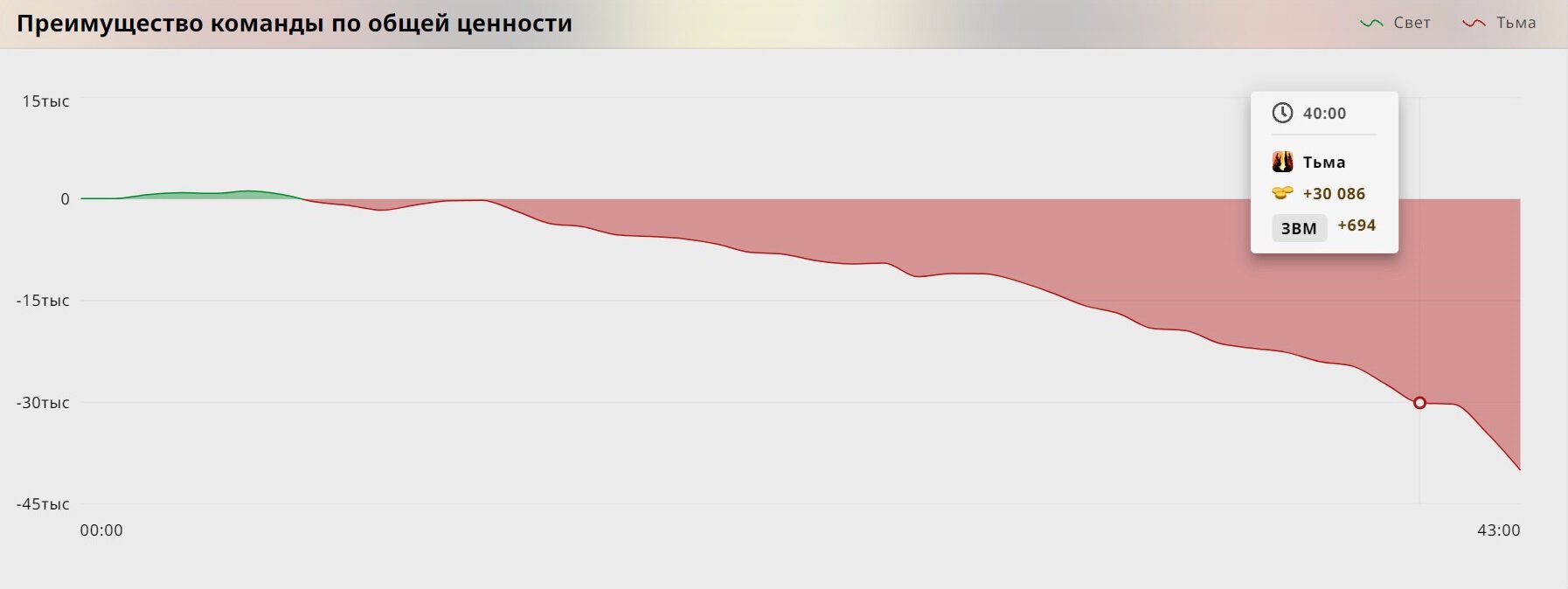 На 40-й преимущество PARIVISION выросло до огромных 30 тысяч. График вероятности победы и общее впечатление от игры двигались с графиком общей ценности в унисон.