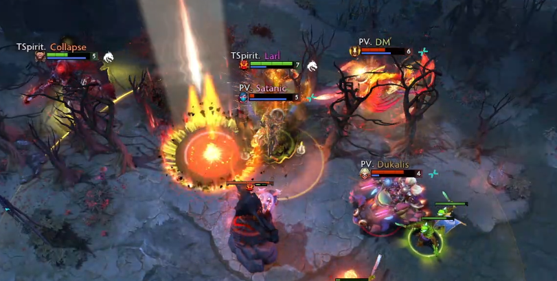 Матч начался бодро: хороший драфт позволял Spirit убивать соперника и наращивать преимущество. Команда вышла в ганг на Templar Assassin, на 100 здоровья Сатаник прячется в Meld… И у героев Spirit просто нет просвета. Ни сентри, ни дастов даже у саппорта Rue. Непростительно на The International!