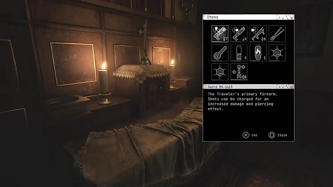 Поместите «Чашу» и «Сосуд» на стол в безопасной комнате. Вы получите «Ключ от подсобки часовни», который откроет путь к новому оружию: Булава JER-5120. Это вариант дробовика с двумя стволами.