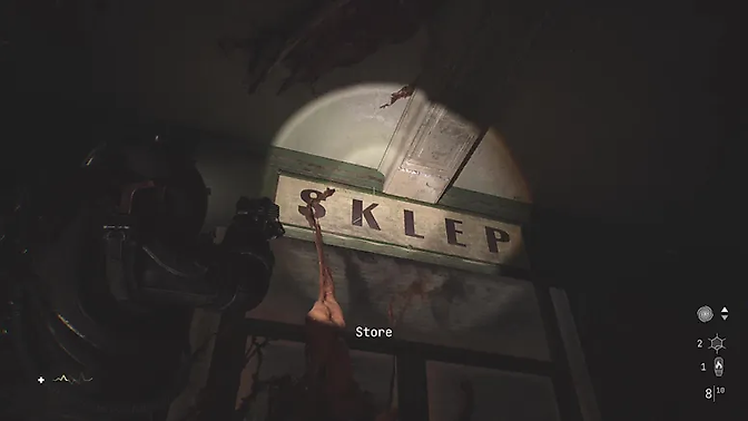 Внутри вы найдете много полезных предметов, которые помогут вам в дальнейшем. На первом этаже магазина вы обнаружите запертую дверь, которая ведет в подвал.