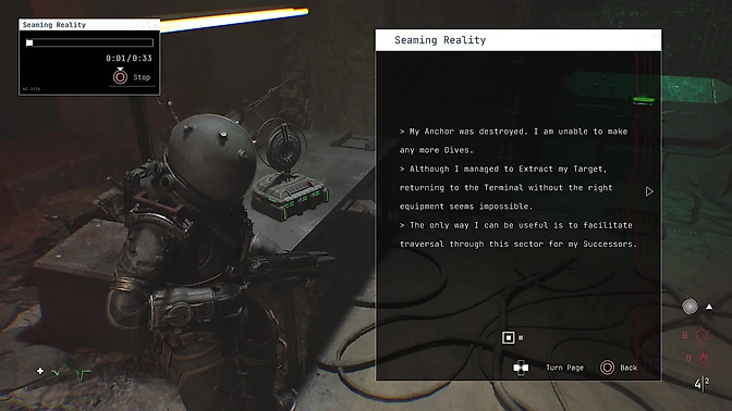 В самом начале используйте Излучатель, чтобы активировать Сингулярность, обнаруженную в финале прошлой главы. Она сформирует временный мост, позволяющий пересечь глубокую пропасть. На другой стороне включите Сингулярность повторно, чтобы выровнять переправу и пройти дальше – почти как на работе: сначала все перекосилось, а потом нужно срочно чинить. В вагоне метро вы найдете первую записку – «Информация для путешественников», которая слегка приоткроет завесу над событиями и даст новые детали о происходящем.