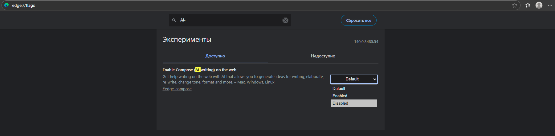 В Microsoft Edge все проще – можно отключить ИИ в настройках.