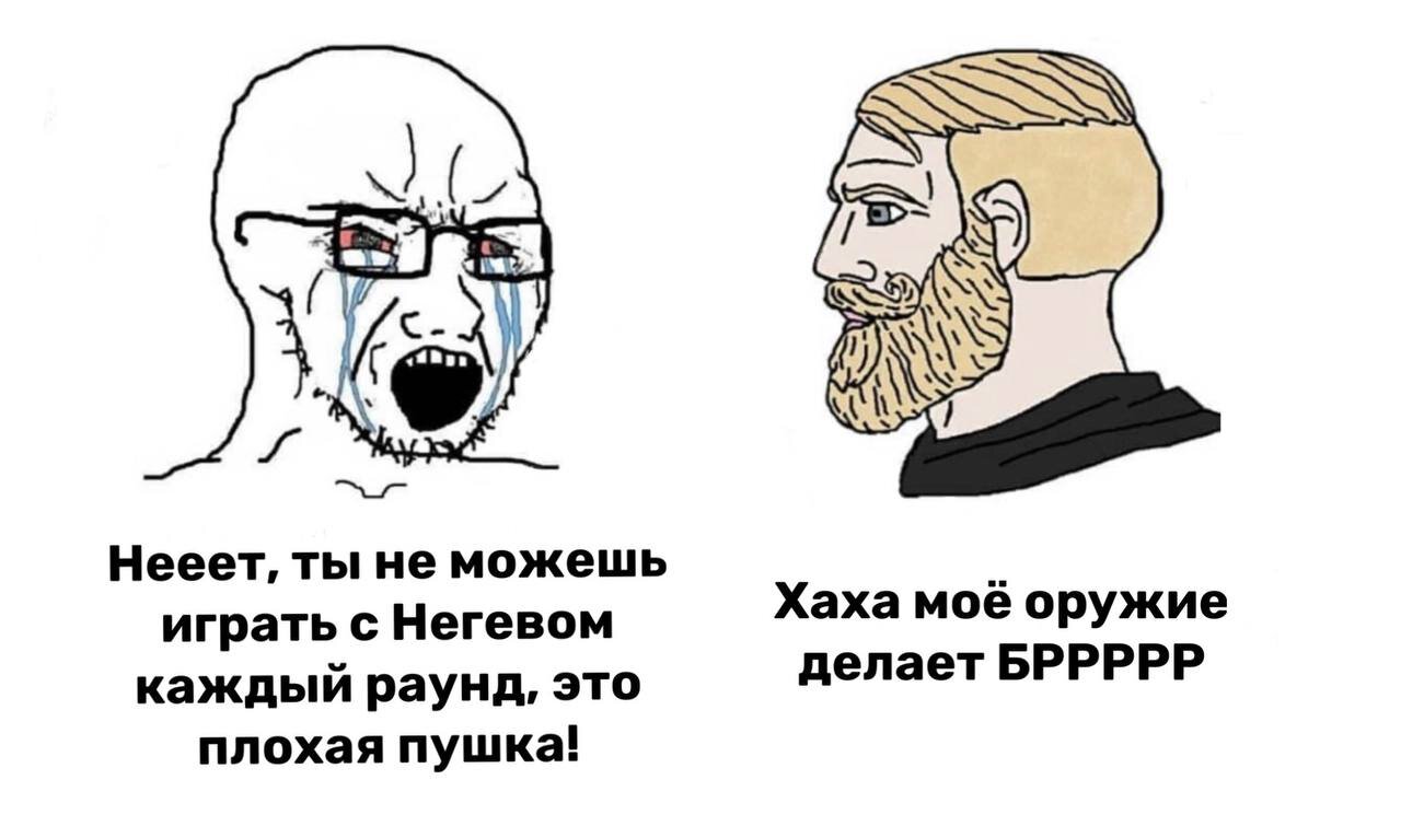 Я понимаю, что для киберспортсменов Negev далеко не лучший выбор. Но не потому, что это оружие для лоускиллов, совсем наоборот! Ведь первые несколько пуль этого монстра летят не туда, куда ты их посылаешь, а туда, куда их посылает Гейб и разработчики. А это время еще нужно как-то пережить, что требует высокого понимания игры и безупречного мувмента!
