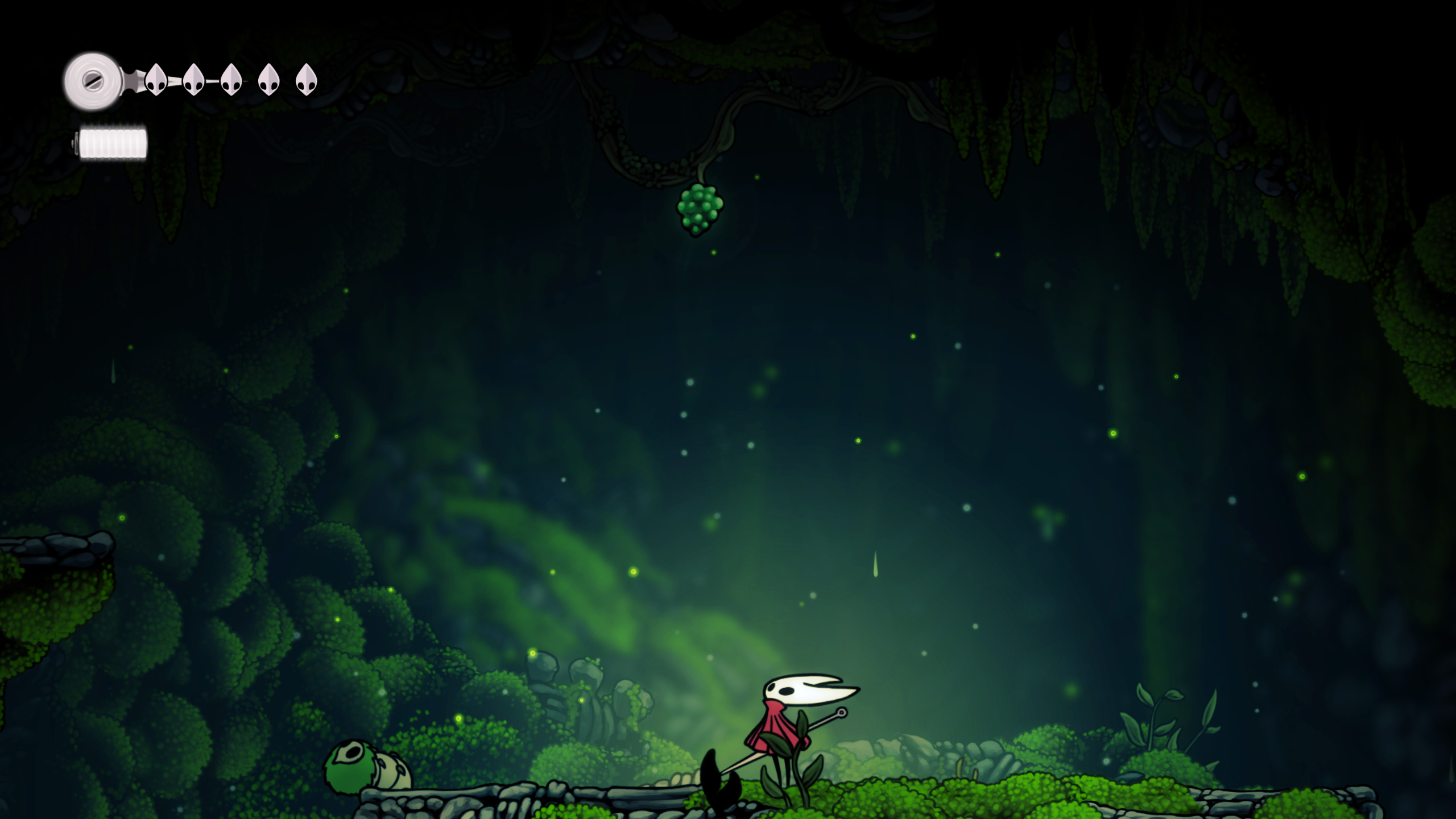 В стартовой зоне Мохового Грота двигайтесь в северо-восточную часть. Здесь есть летающий жук, а сама ягода расположена выше, на возвышении.