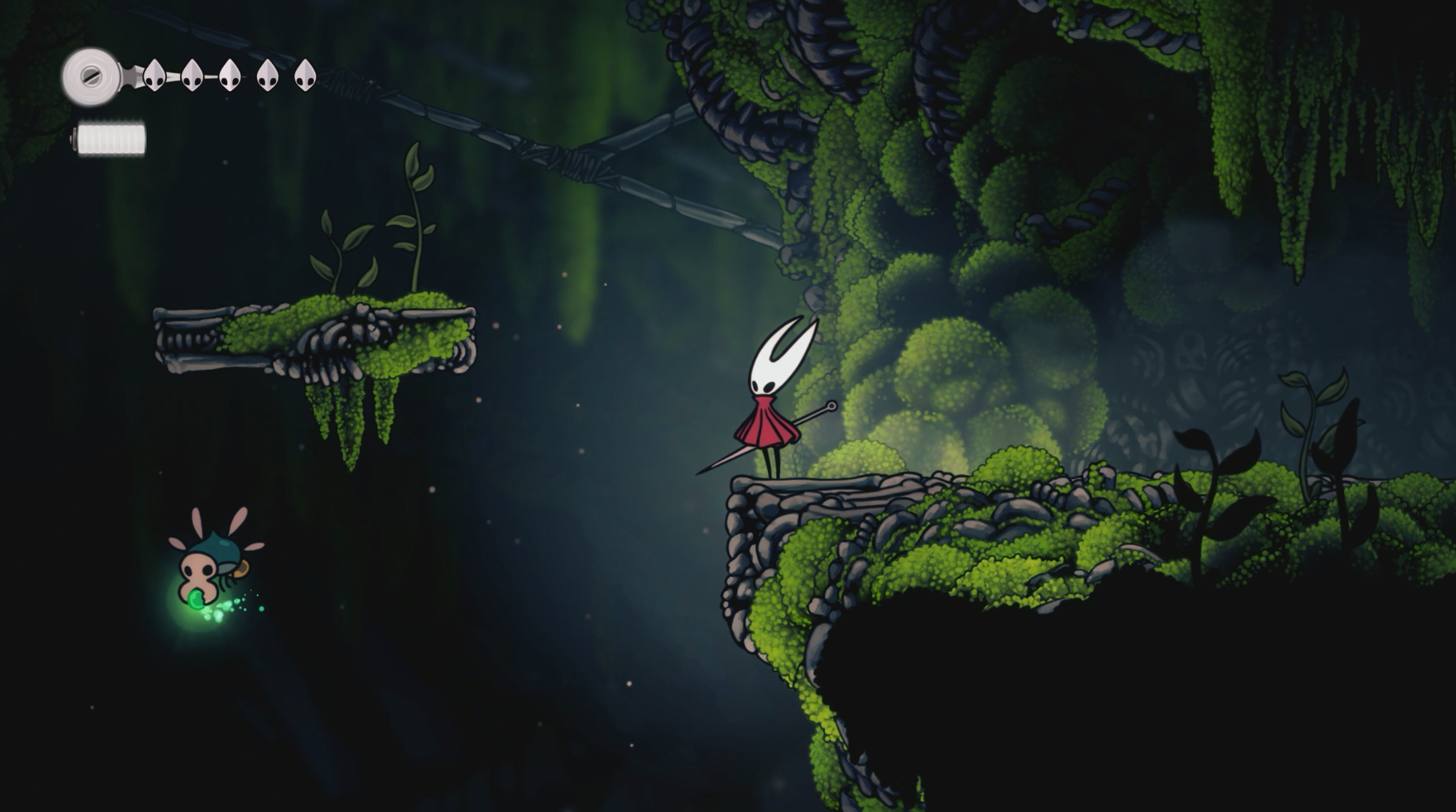 Амулет частично восполняет шкалу шелку зеленым эликсиром каждый раз, когда Хорнет получает урон. Очень полезная вещь для начала игры, пока привыкаете к механикам и врагам.