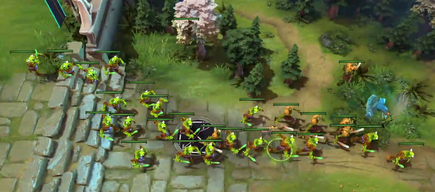 Ну и конечно, Доминатор позволяет безопасно делать крип-скип. Вашу команду убили и хотят ломать Т2 или даже строения на базе? Просто направьте крипа на линию за спины соперника и убейте или уведите подальше пачку соперника. Если крипы не дойдут до башни, ее никак не снести. Помните, как Speeed настакал под три десятка крипов? Он просто водил каждую новую пачку за своим прирученным юнитом, а соперник в итоге ничего не спушил.