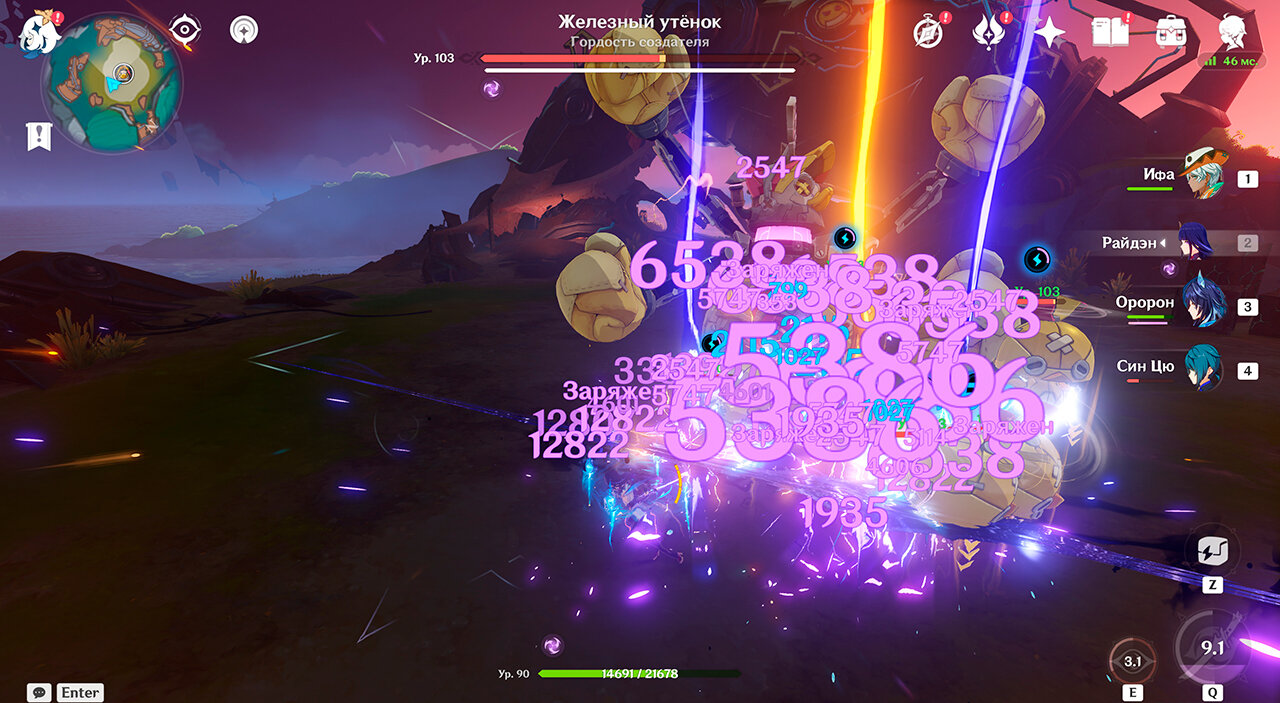 Команды для Железного утенка должны содержать минимум одного Гидро и одного Электро для создания реакции Заряжен/Лунный заряд.
