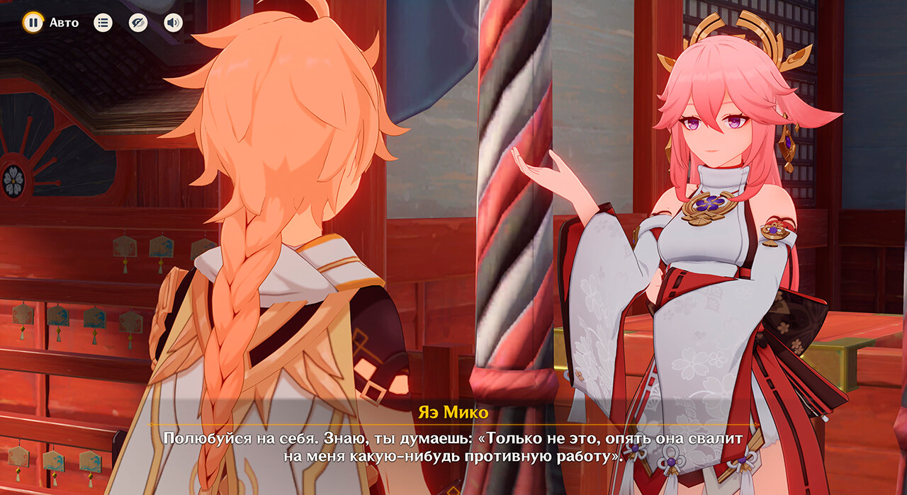 В журнале квестов отыщите задание «Истории путешествий: Предначертание судьбы» и послушайте, что Яэ Мико говорит о новых правилах работы храма.