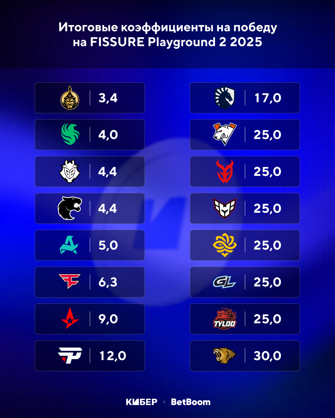 FISSURE Playground 2 – первый турнир для Aurora после EWC, где команд впервые за 2025 год дошла до финала. Главная звезда состава Xantares в хорошей форме, снайпер Woxic в последнее время тоже блистает. Так что вновь ждем борьбу за первое место.
