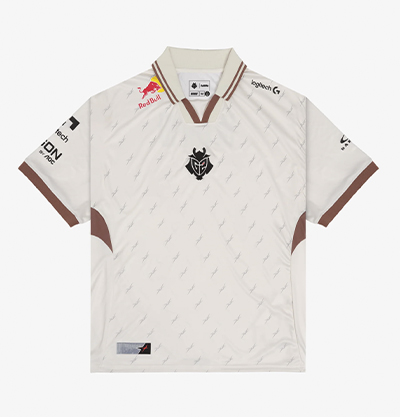 Легендарные G2 уже не те. m0NESY и Niko уже давно нет в составе, организация катиться в tier-2, но по форме все на удивление хорошо. Джерси выполнена в молочном цвете с бронзовато-карамельно-коричневыми деталями. Знакомьтесь, наш будущий лучший друг по части спонсорства – Red Bull. Думаю объяснять, что там и кого окрыляет, не стоит. Но тут мы имеем схожую ситуацию с Legacy – снова два спонсора, которые занимаются периферией для геймеров. Но, есть улучшения. Про Logitech и так все понятно, а вот AGON by AOC занимаются лишь производством мониторов. Дальше у нас довольно интересный партнер. Oakley является модным брендом, но я уверен они не занимаются пошивом формы для G2. Но само сотрудничество имеет прикольный вайбик :3. Но вот мы подходим к лудке и спонсору «РЕЙВСКИНОВ», сайту с кейсами, в которых вы обязательно (нет) сделайте огромный вывод. 6/10.