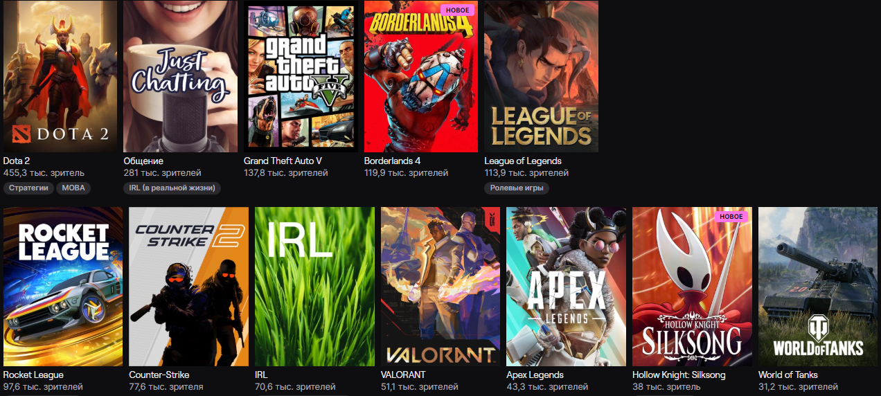 Скриншот сделан в четверг. Не самую хайповую игру PARIVISION и Heroic в верхней сетке смотрели 450 тысяч человек.