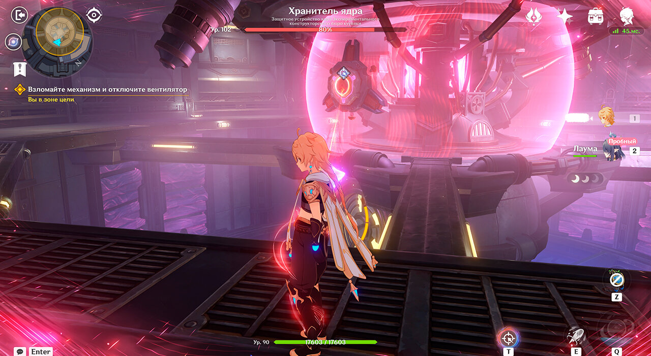 Хранитель ядра – босс, призывающий роботов в сражении. Его механика устроена так, что ему нельзя нанести урон способностями персонажей, и нужно использовать новые геймплейные фишки. Эту часть легко пройти без боев вообще.