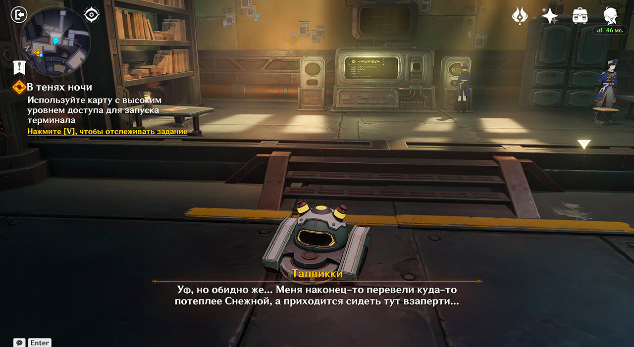 Обойдите так, чтобы дрон не заметил, и вы увидите, что терминалу нужны энергоблоки. Вернитесь к первому терминалу и выберите: