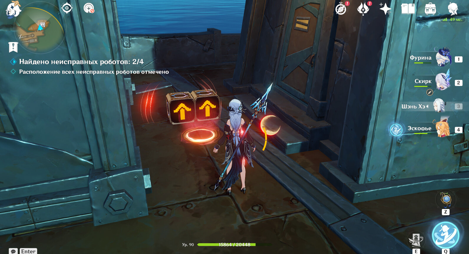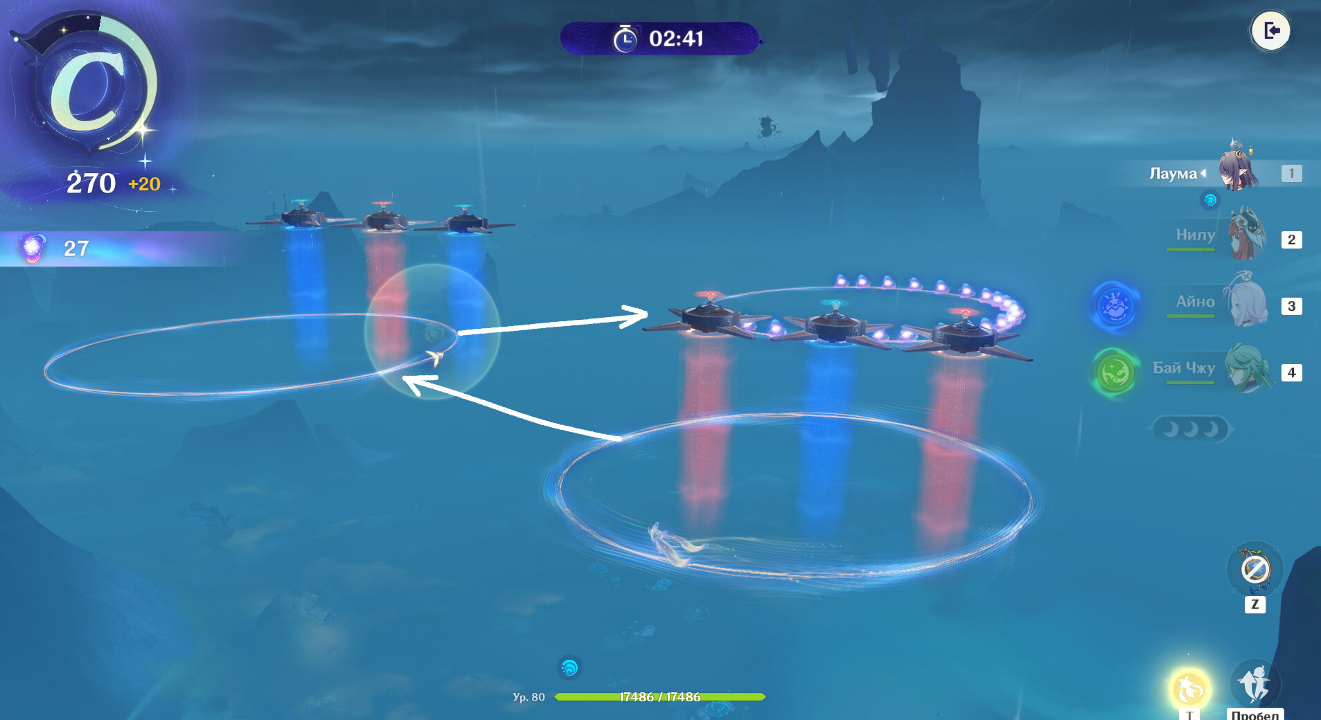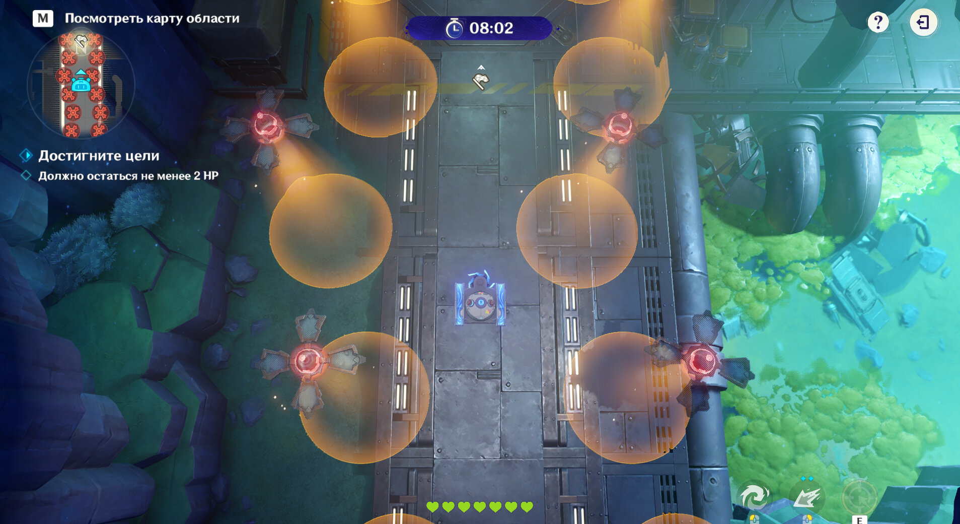 Испытание на военной базе Фатуи откроет новый вид препятствия – летающих дронов. Чтобы сбить их, нажмите на кнопку Т, когда подлетите поближе.