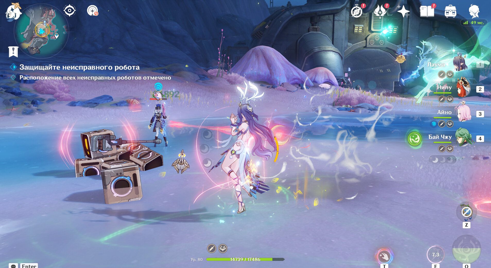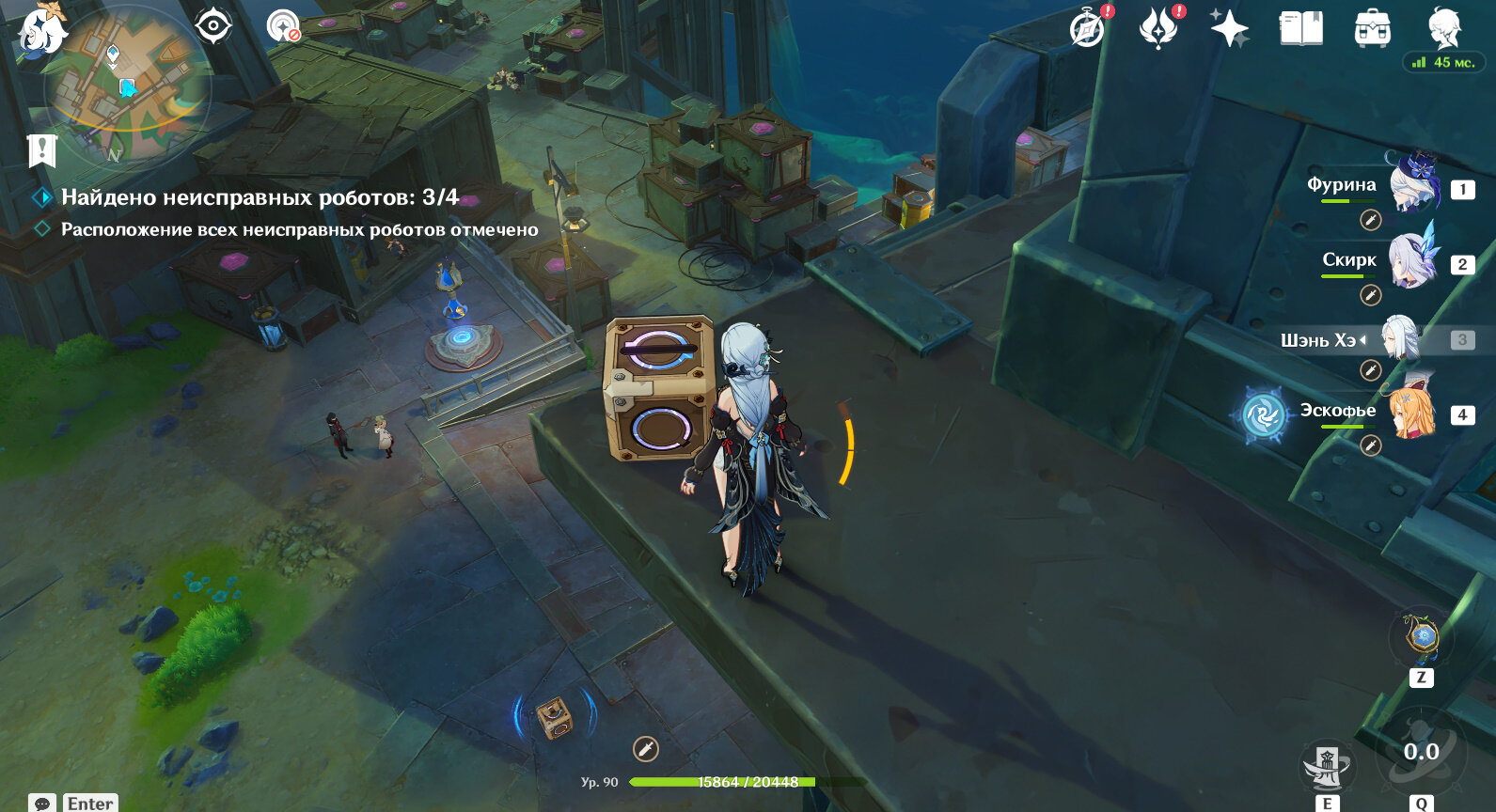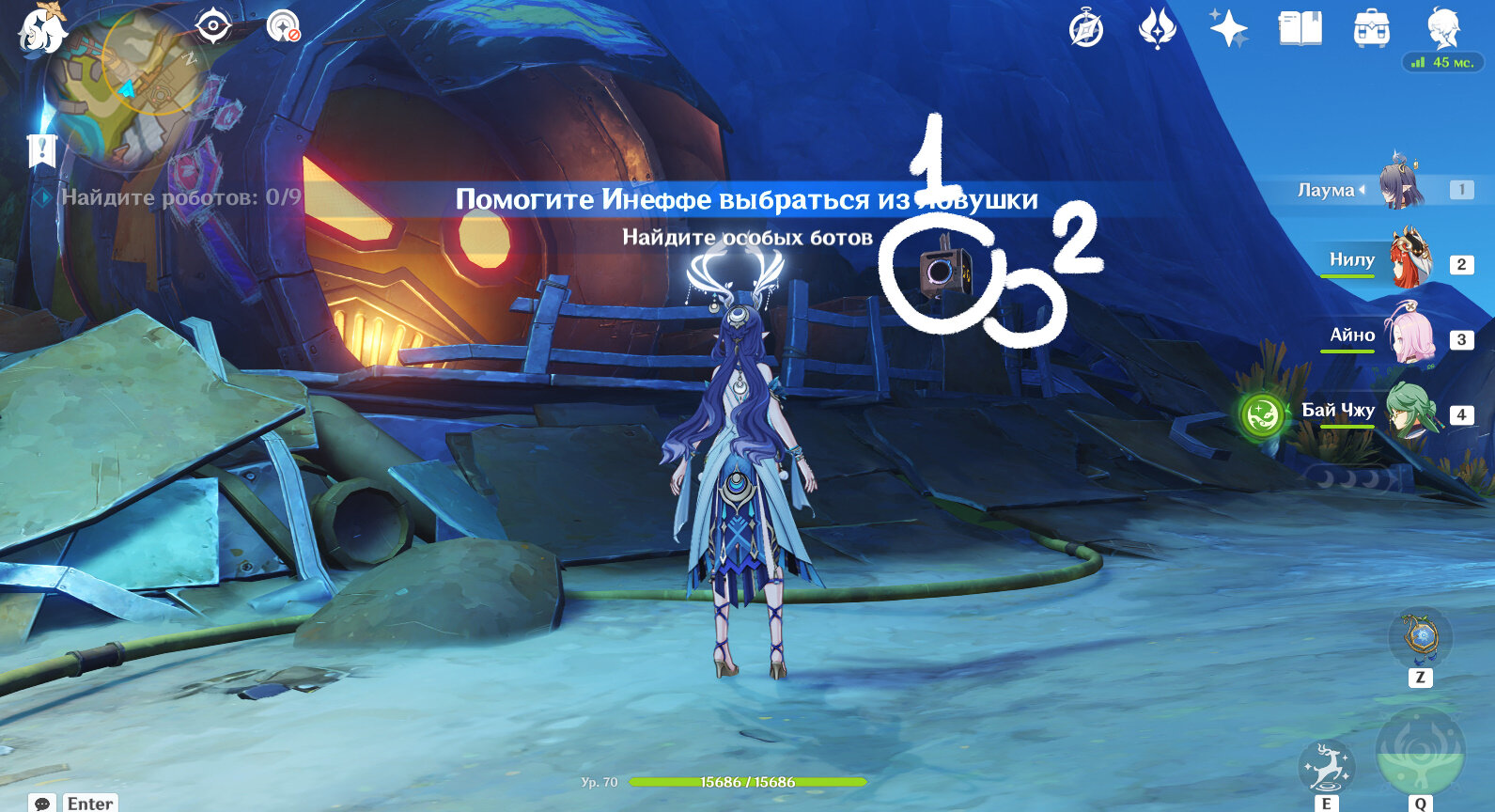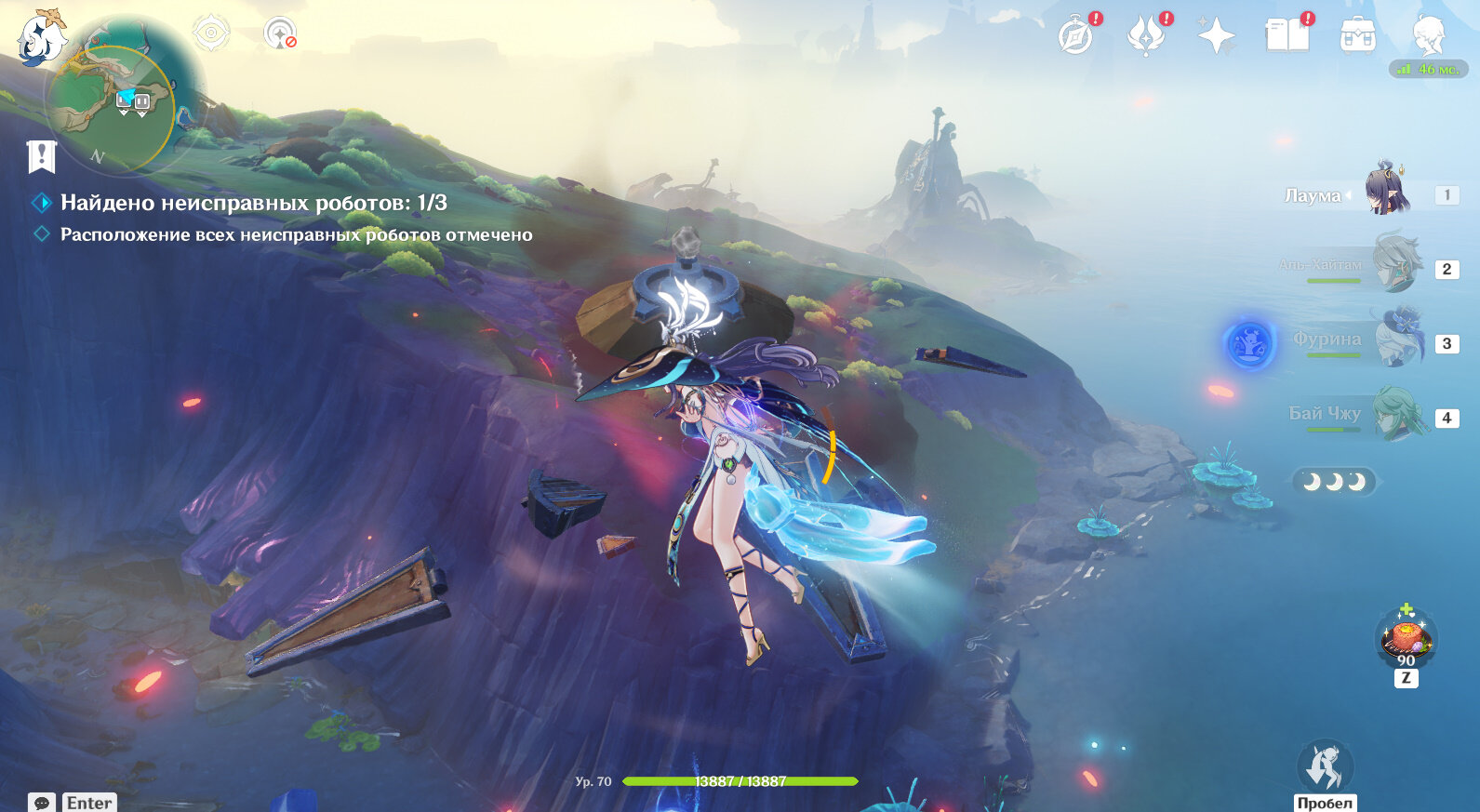 Испытание на военной базе Фатуи откроет новый вид препятствия – летающих дронов. Чтобы сбить их, нажмите на кнопку Т, когда подлетите поближе.