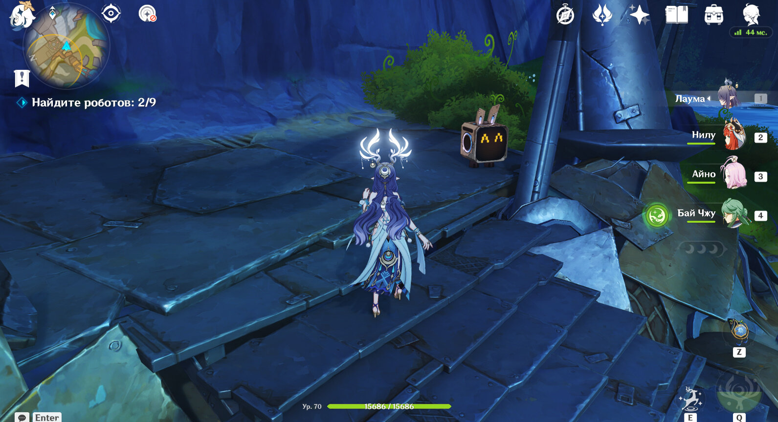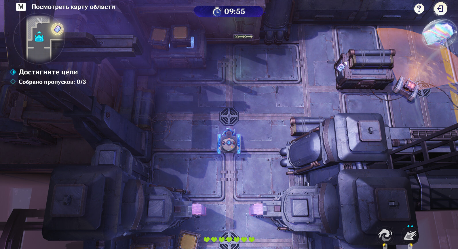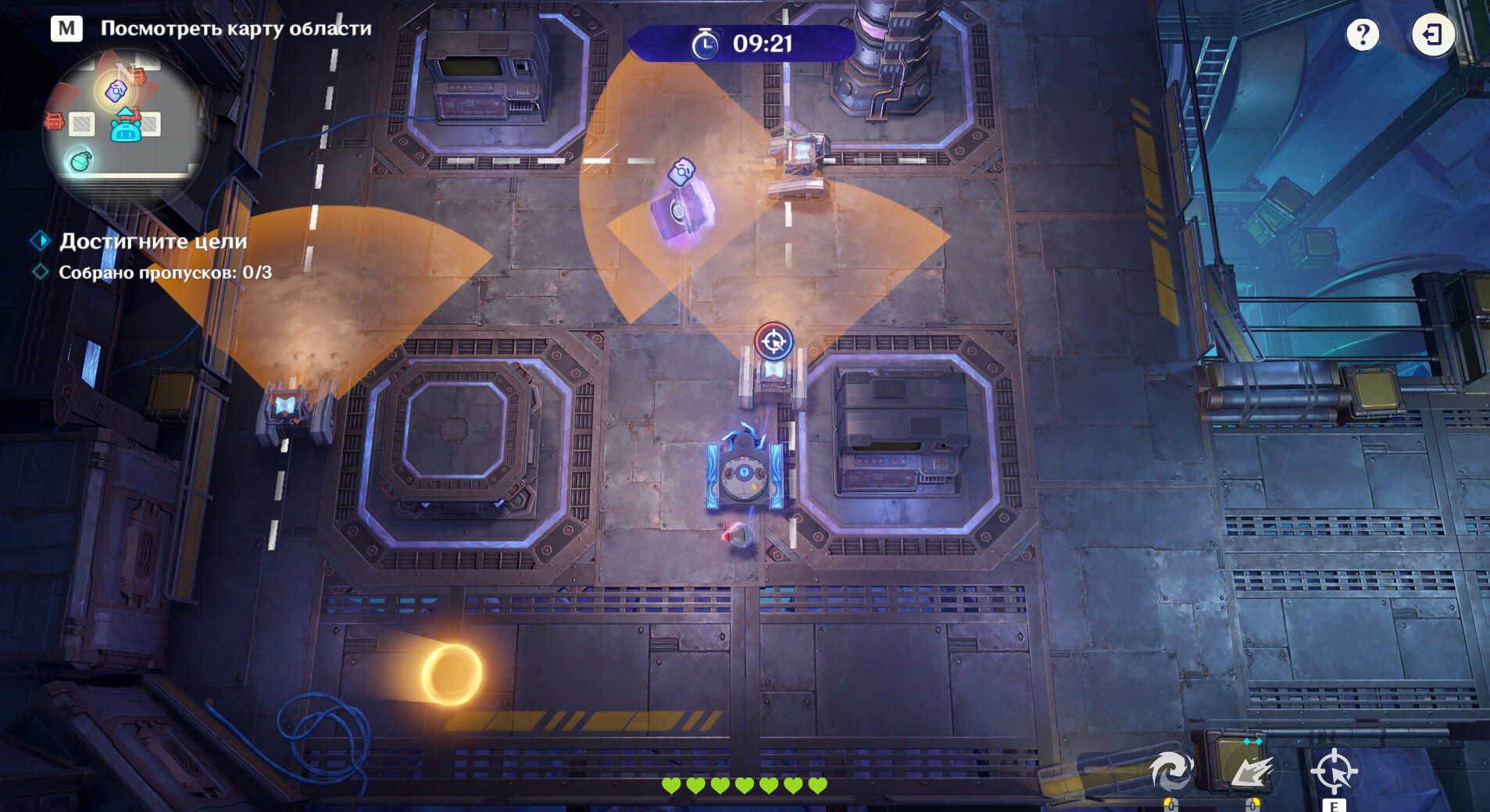 - Собирайте блестящие энергетические частицы, чтобы открыть местоположение всех роботов.