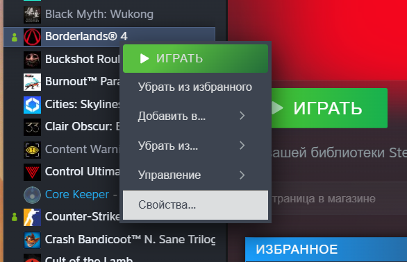 - Запустите Steam и отыщите в библиотеке Borderlands 4.