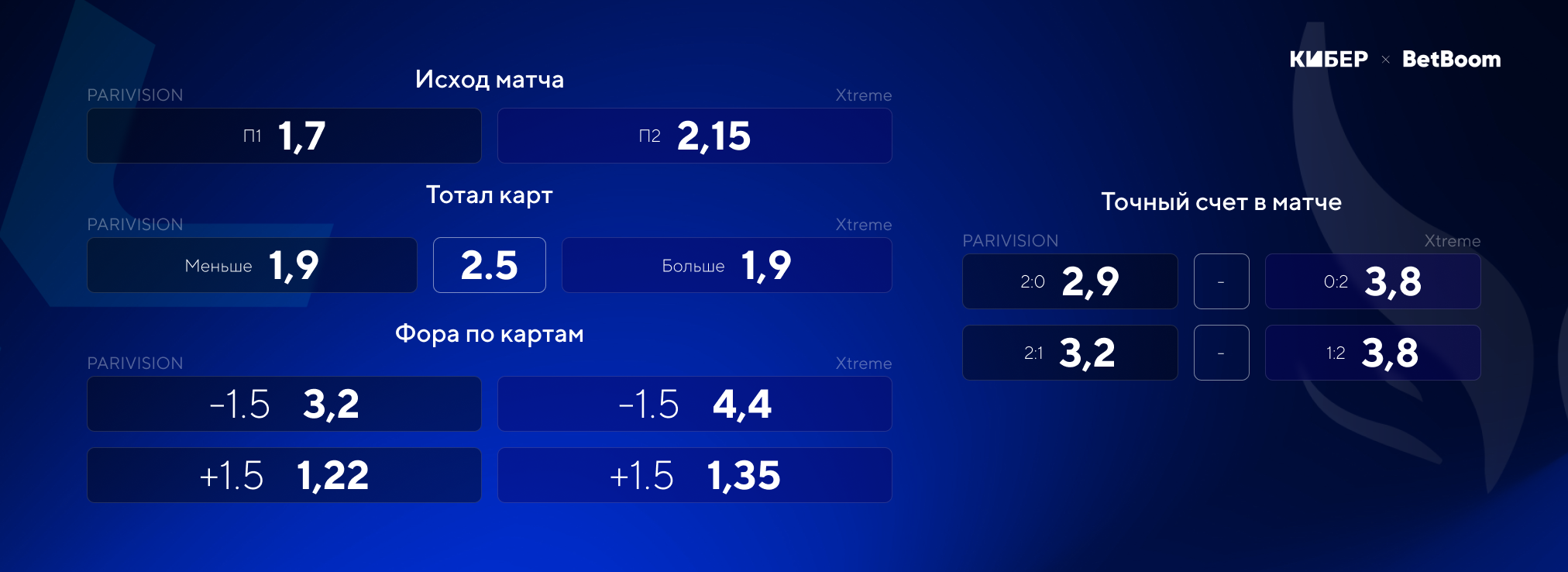Xtreme – непростой соперник. В прошлом очном матче китайцы считались фаворитами, и это им не помогло. А в этот раз у PARIVISION в активе есть недавняя уверенная победа и преимущество в отдыхе перед противником. Коэффициент 1,7 на ее победу – просто подарок.