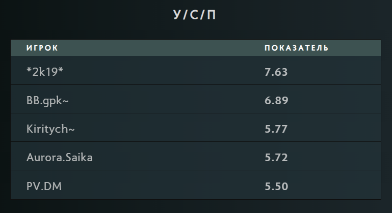 И это с учетом Миреле и Киритича, которые сыграли по одному успешному турниру на замене и заняли первую и третью строчку соответственно. Если убрать их из списка, то DM займет третью строчку, сразу после бывших тиммейтов Гпк и Найтфолла.